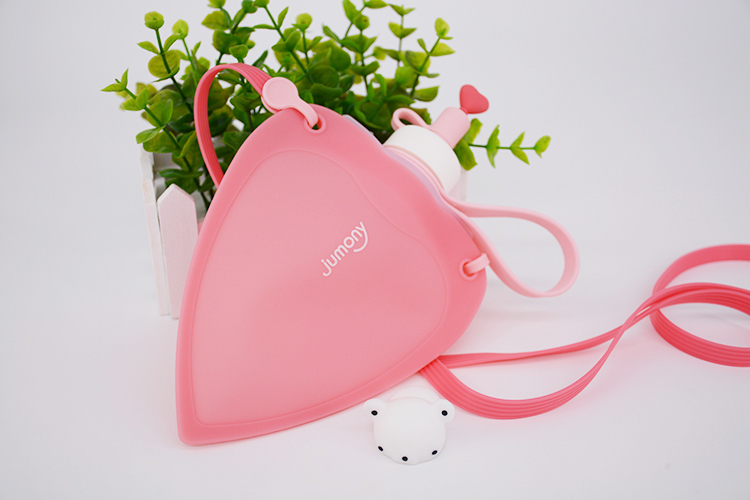 產(chǎn)品名稱(chēng):思利滿(mǎn)愛(ài)心形硅膠背帶水壺 韓國(guó) jumony食品級(jí)戶(hù)外兒童水袋