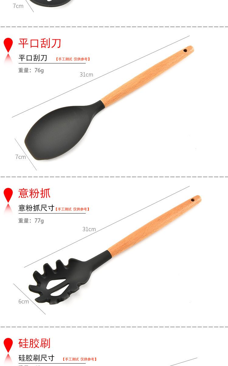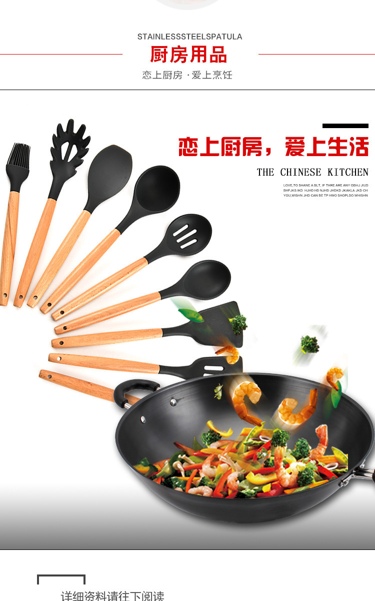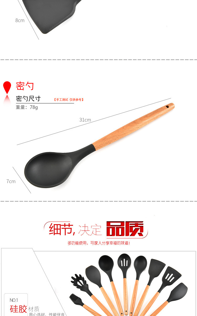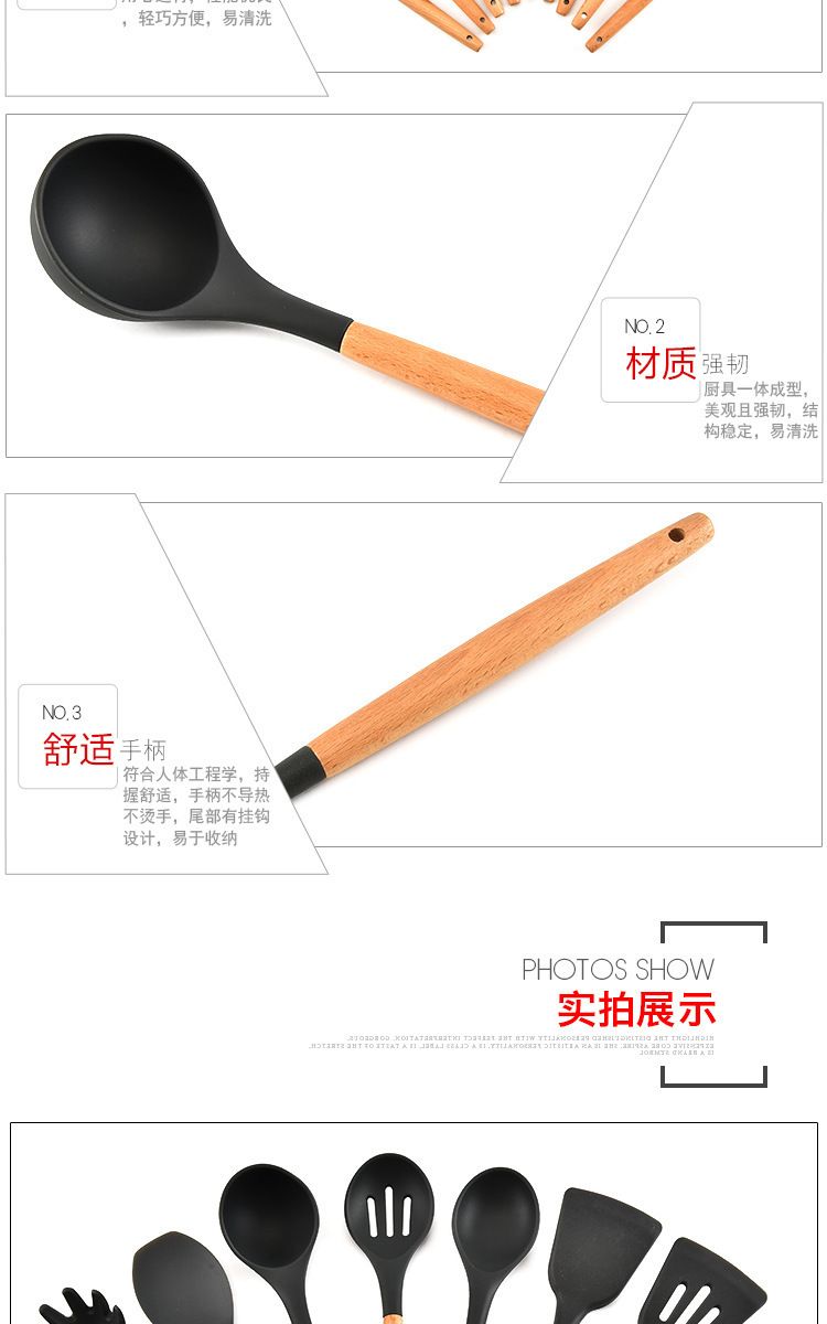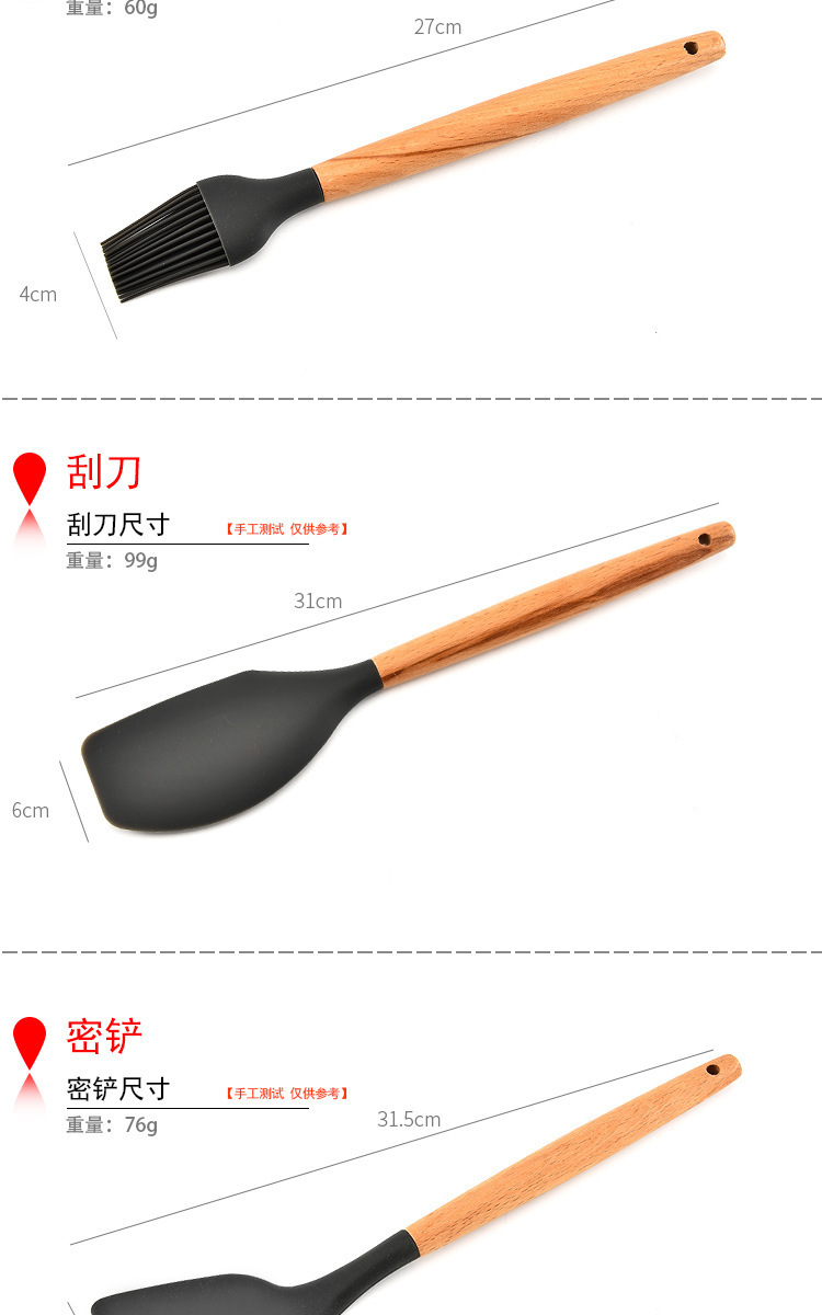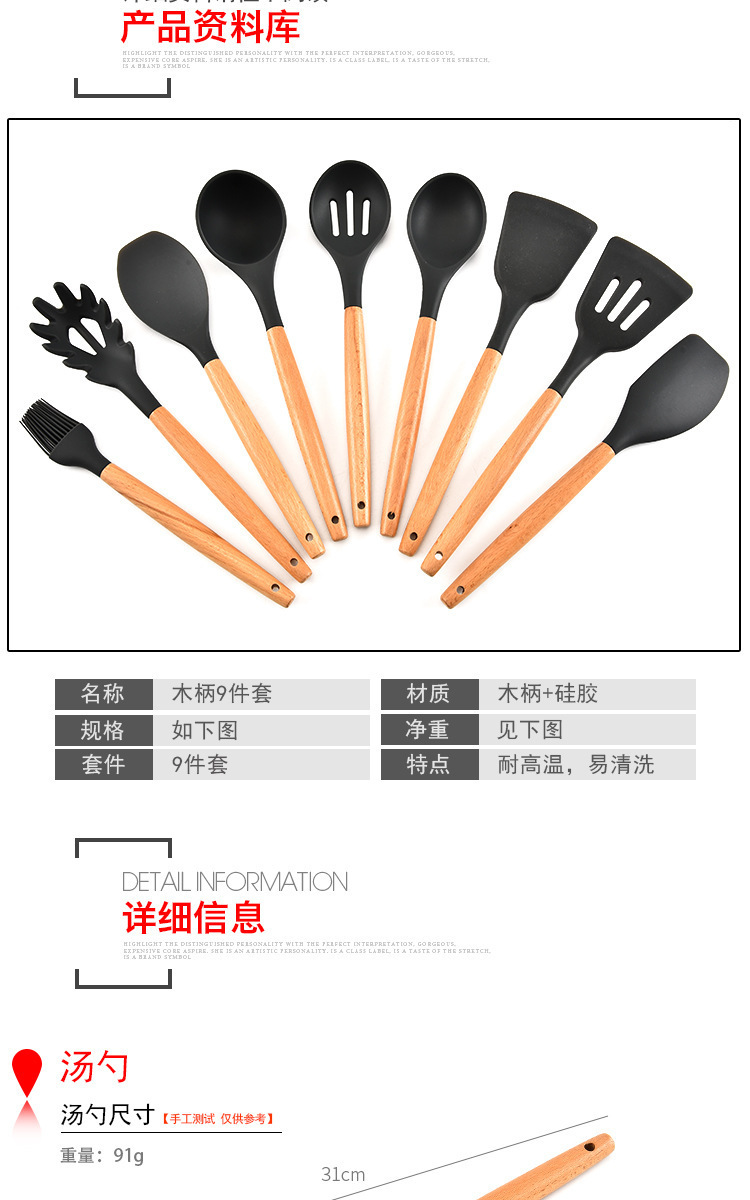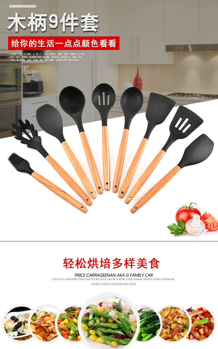 • 名稱:木柄9件套硅膠廚具,硅膠廚具九件套木柄