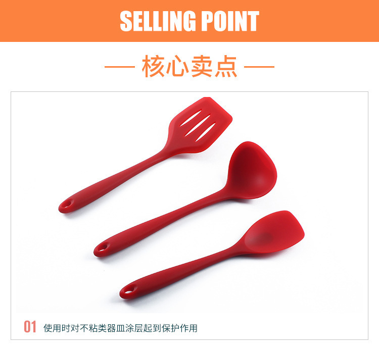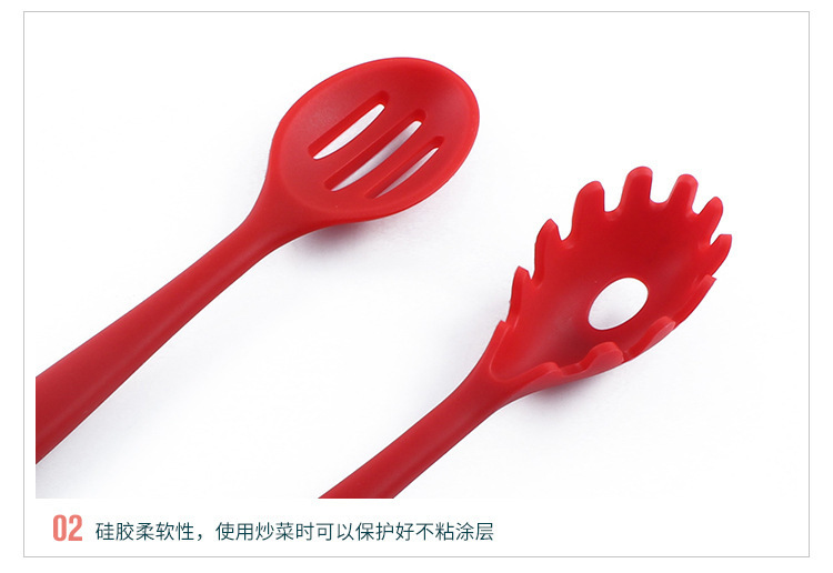 2、硅膠柔軟性,使用炒菜時(shí)可以保護(hù)好不粘涂層