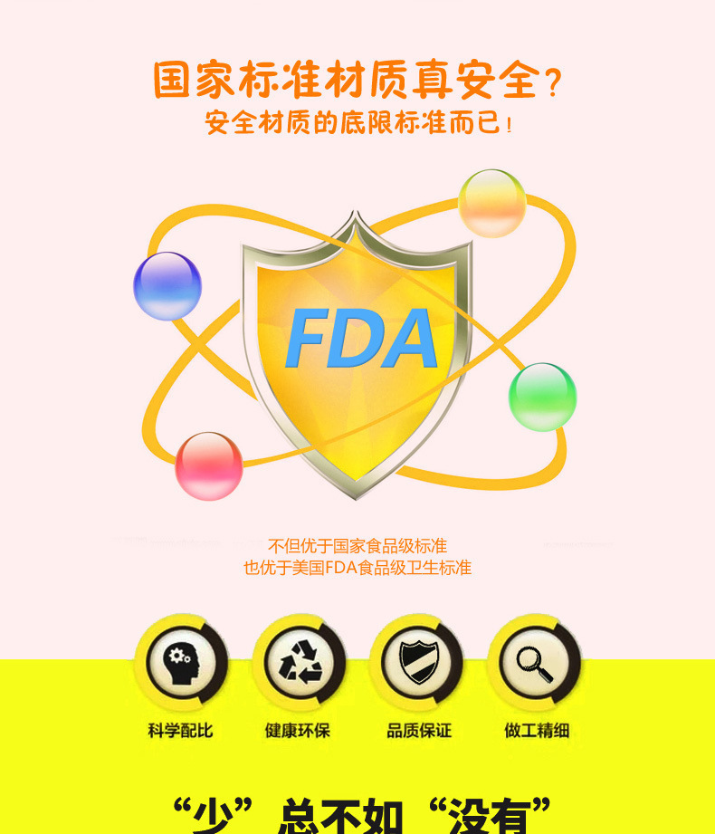 2、通過國家有害物質(zhì)權(quán)威檢測,不含有毒物質(zhì)雙酚A,高強度、高韌性、優(yōu)異的抗沖擊性能,時刻保護寶寶嬌嫩的肌膚,溫柔細(xì)膩的色彩。