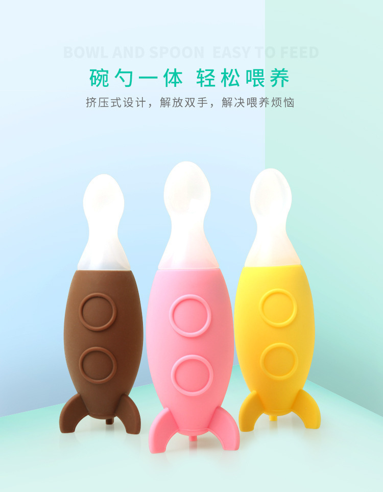 火箭硅膠喂養(yǎng)勺,火箭嬰兒輔食勺,寶寶硅膠硅膠軟勺
