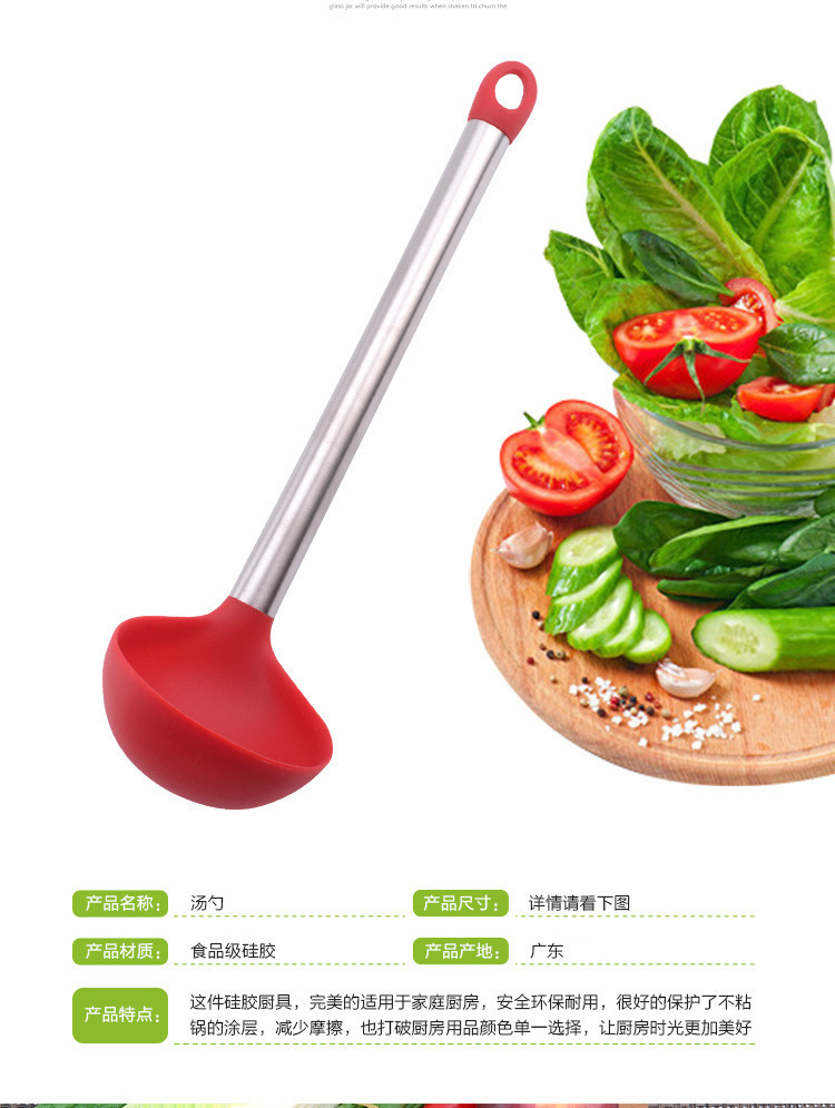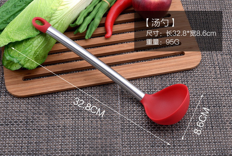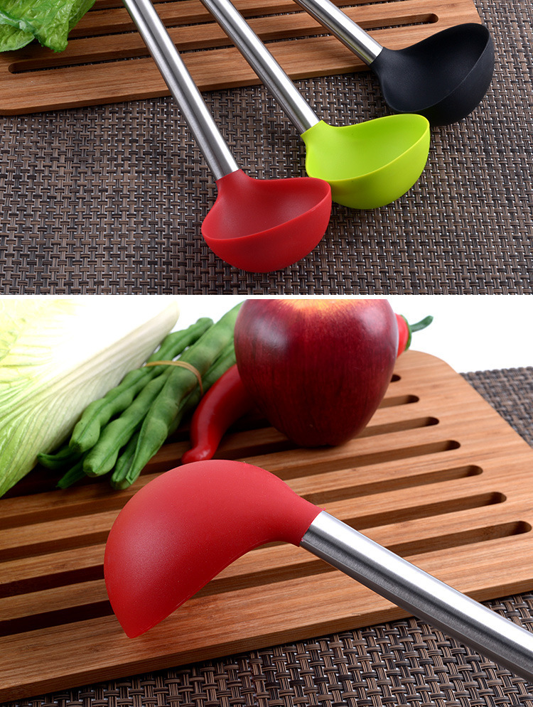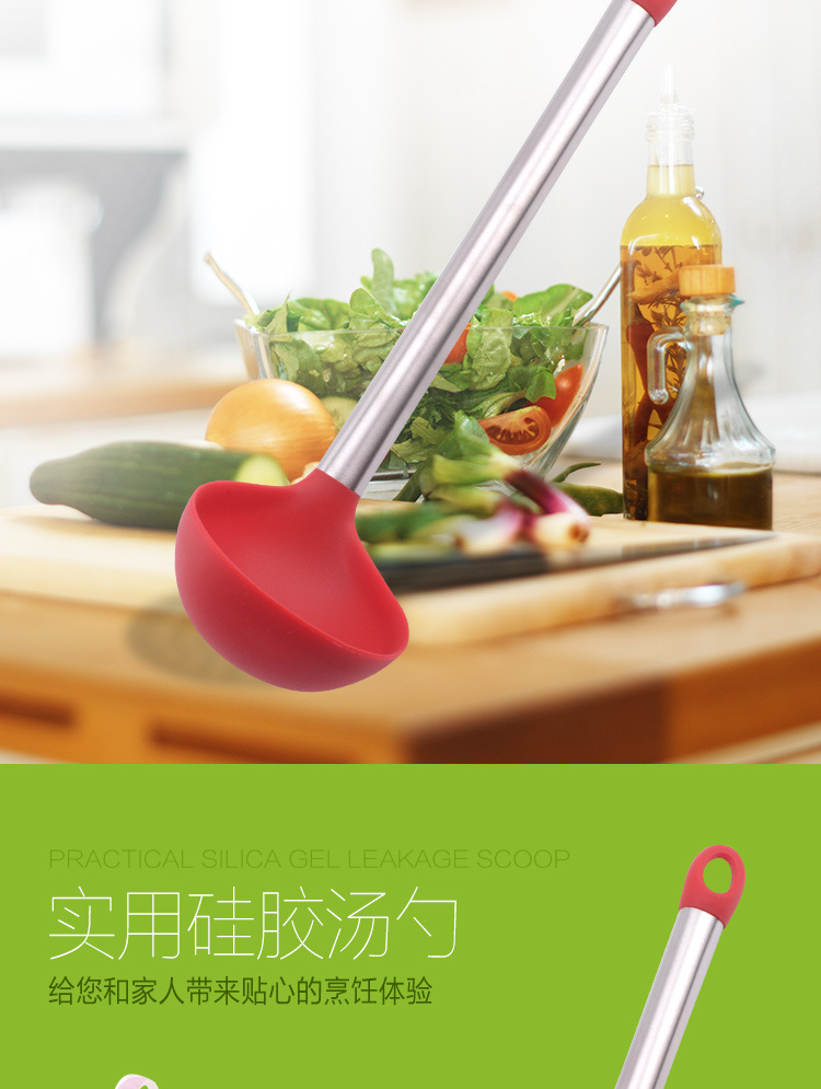 • 不銹鋼硅膠長柄湯勺,硅膠不銹鋼長柄湯勺,硅膠不銹鋼大號湯勺