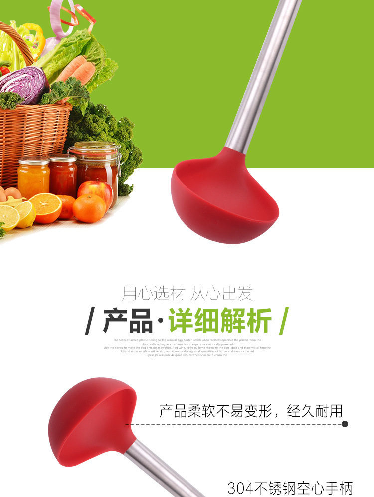 1、這件硅膠廚具完美的適用于家庭廚房,安全環(huán)保耐用,很好的保護了不粘鍋的涂層,減少摩擦,也打破廚房用品顏色單一選擇,讓廚房時光更加美好