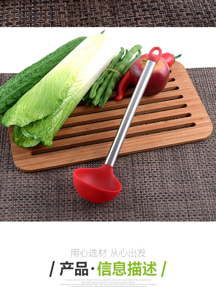 不銹鋼硅膠長柄湯勺,硅膠不銹鋼長柄湯勺,硅膠不銹鋼大號湯勺