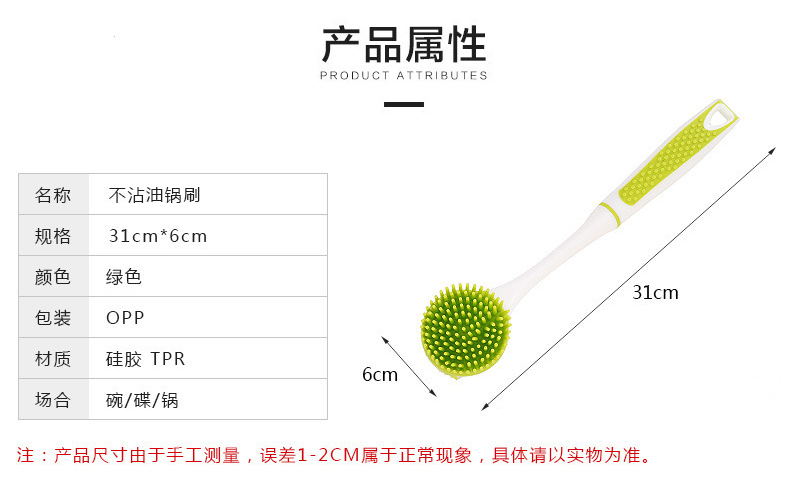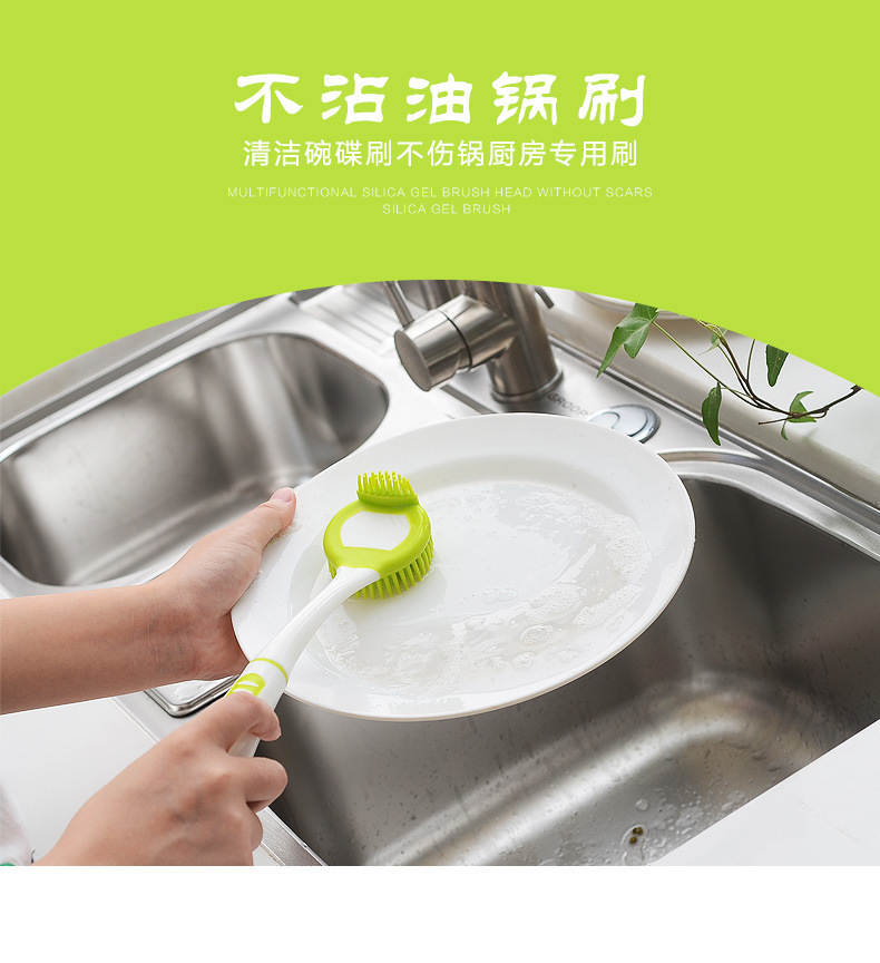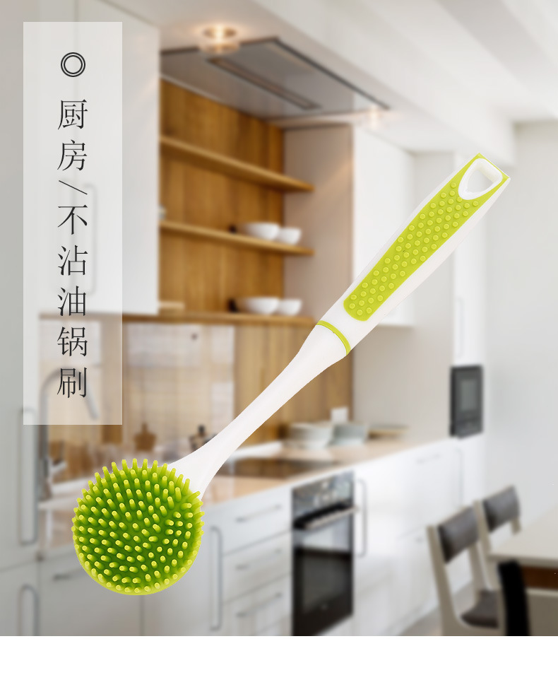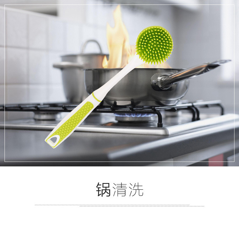 • 硅膠長柄清潔刷,硅膠不沾油長柄刷子,硅膠廚房洗碗刷