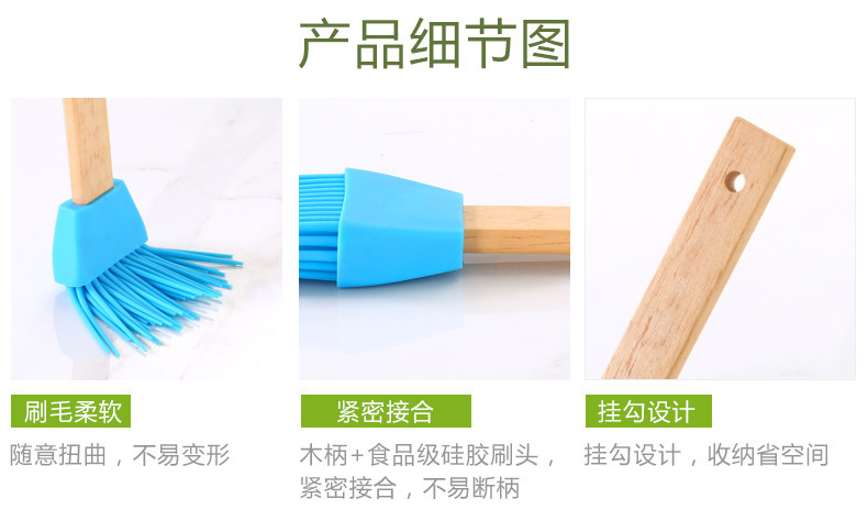 2、緊密結(jié)合,木柄+食品級(jí)硅膠刷頭,緊密結(jié)合,不易斷柄