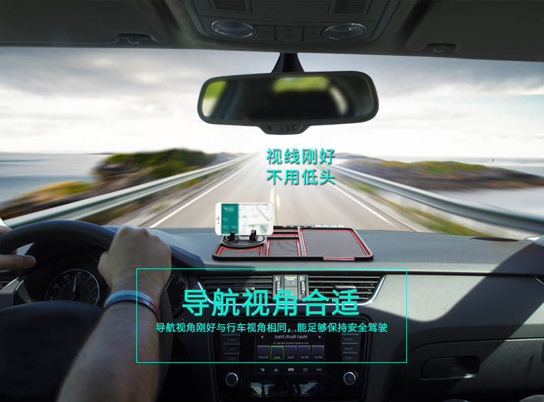 3、當(dāng)你開車時,可以將手機(jī)垂直固定在防滑墊內(nèi),方便查看地圖。垂直放置時,可以方便的觸摸手機(jī)屏幕。